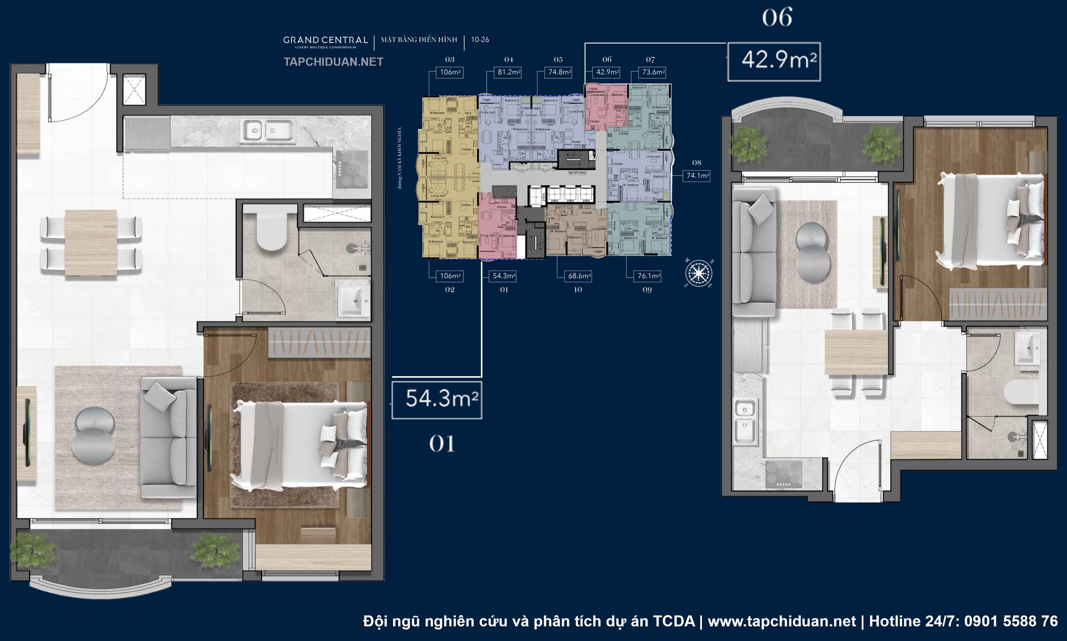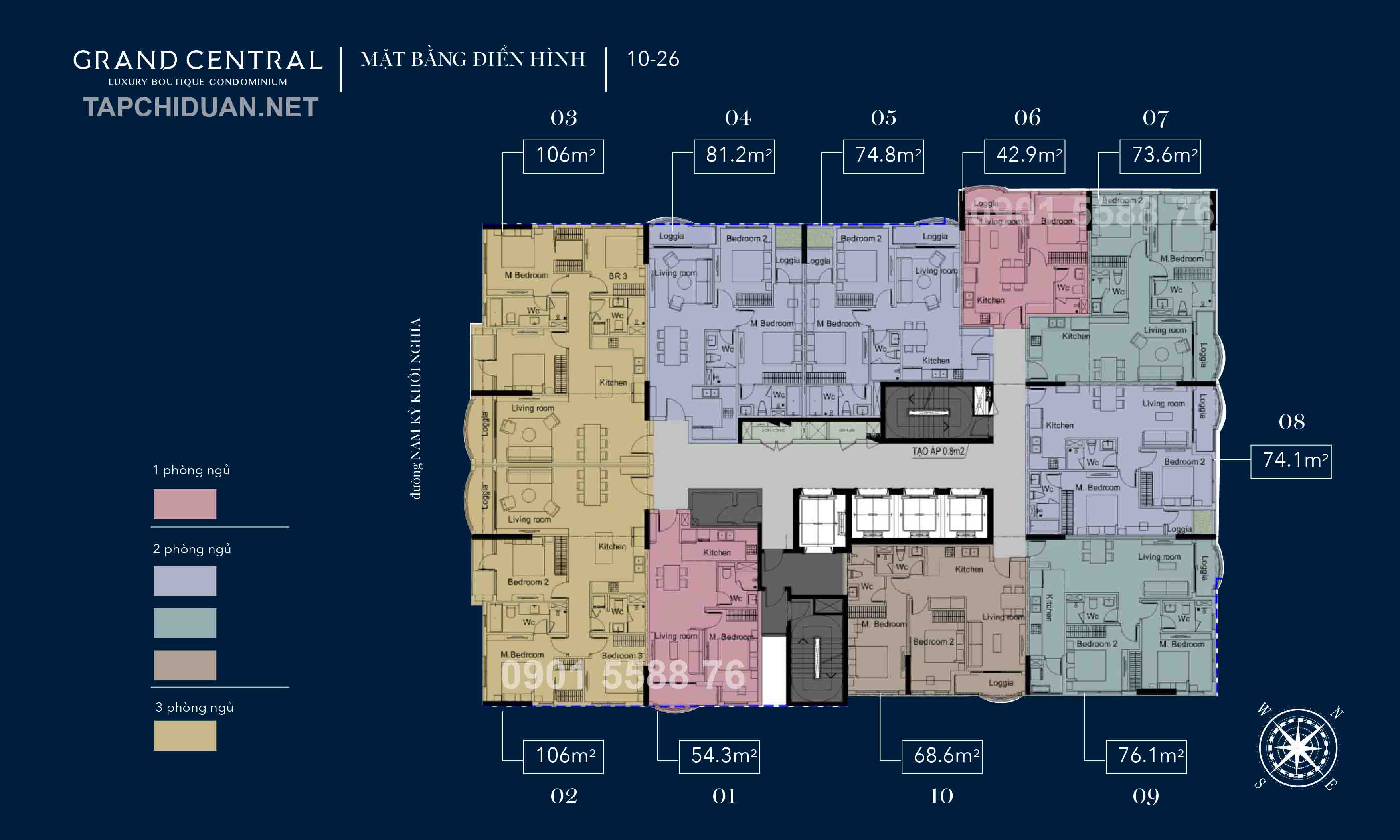 Mặt bằng loại hình căn hộ Grand Central Quận 3.