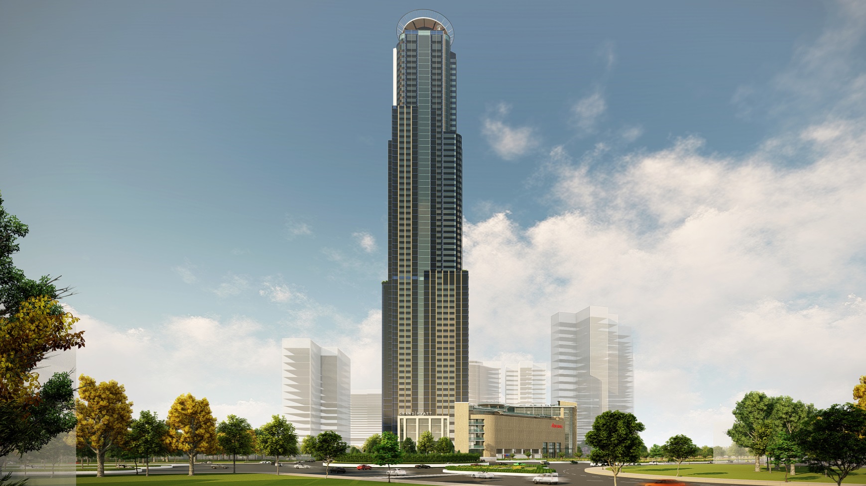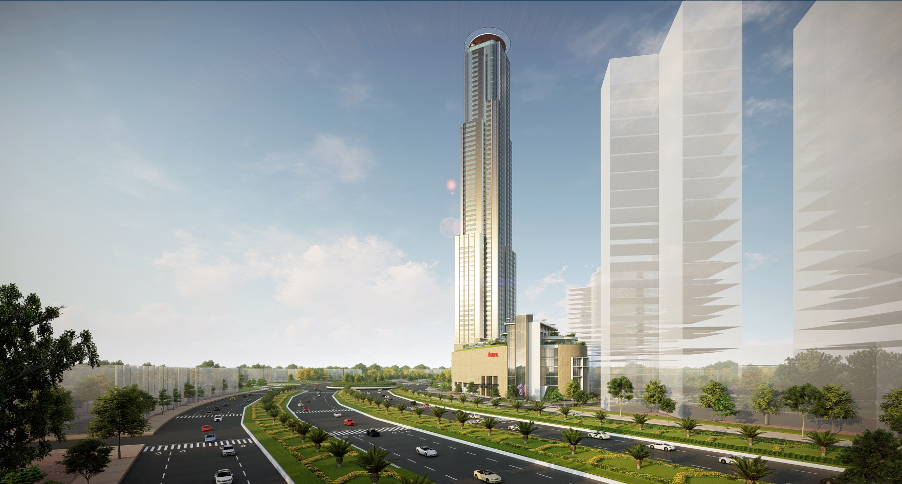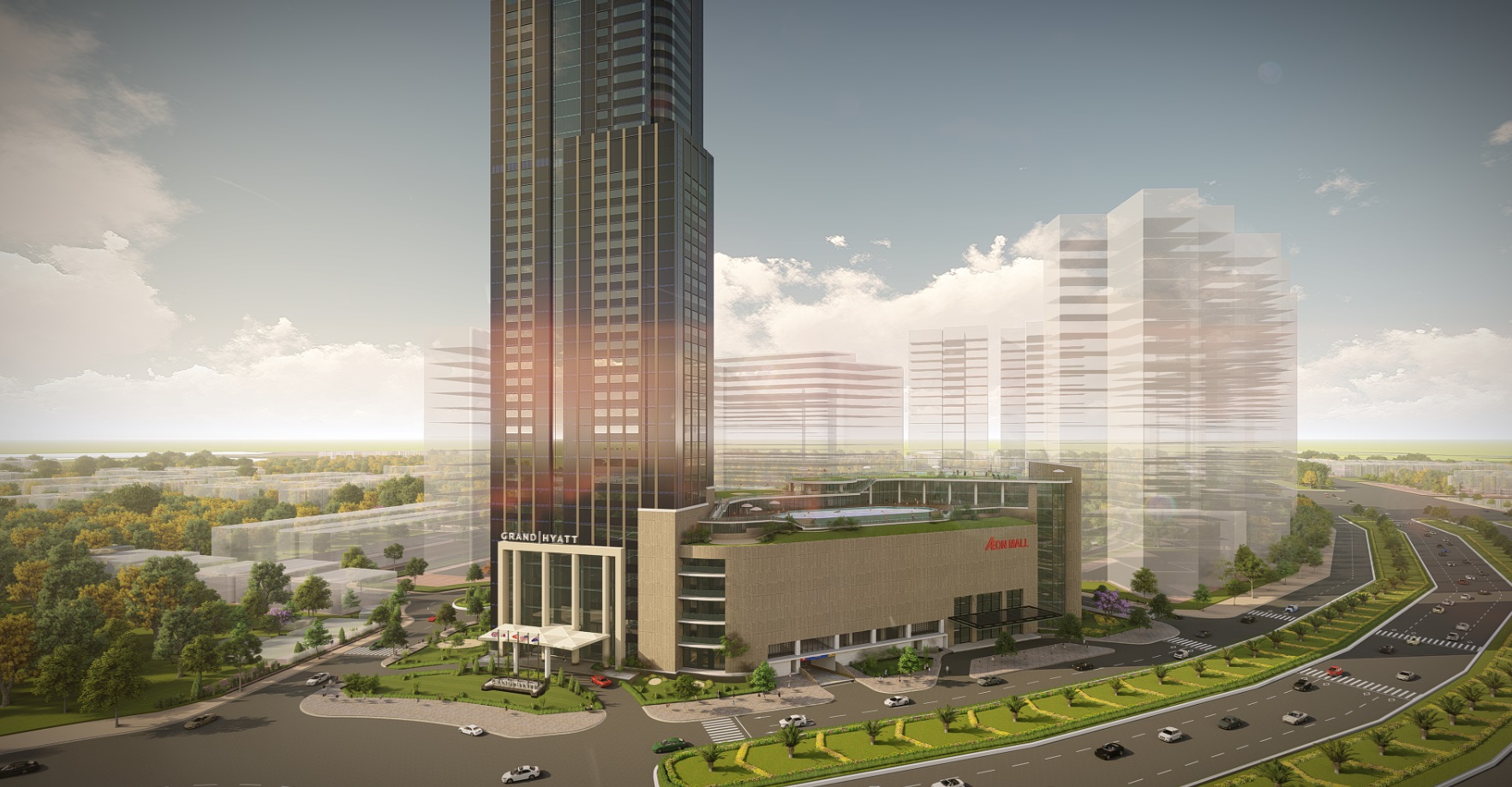 Phối cảnh khách sạn Grand Hyatt Eco Green Sài Gòn nhìn từ đường Nguyễn Văn Linh
