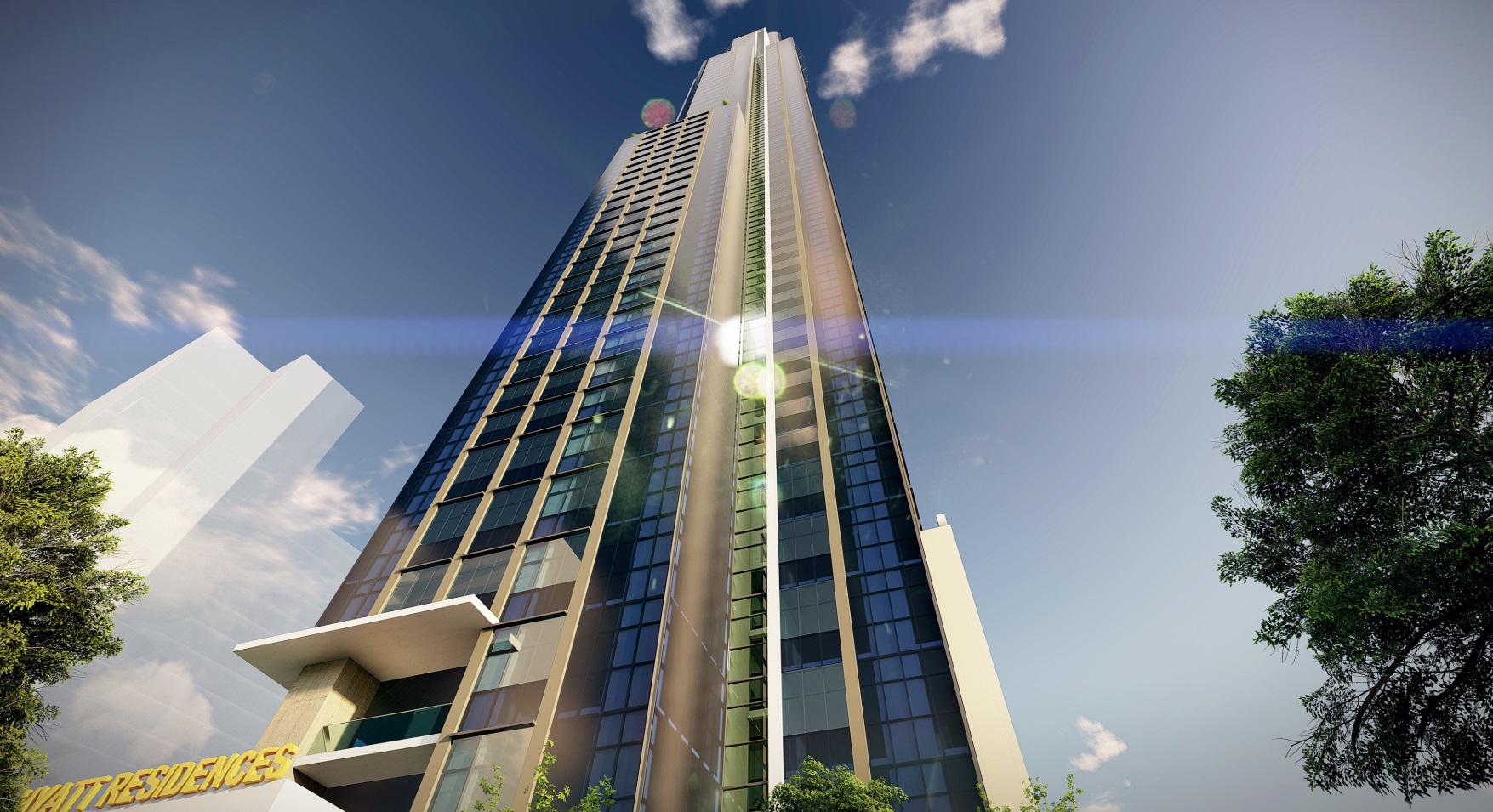 Phối cảnh nhìn từ dưới lên khách sạn Grand Hyatt Eco Green Sài Gòn