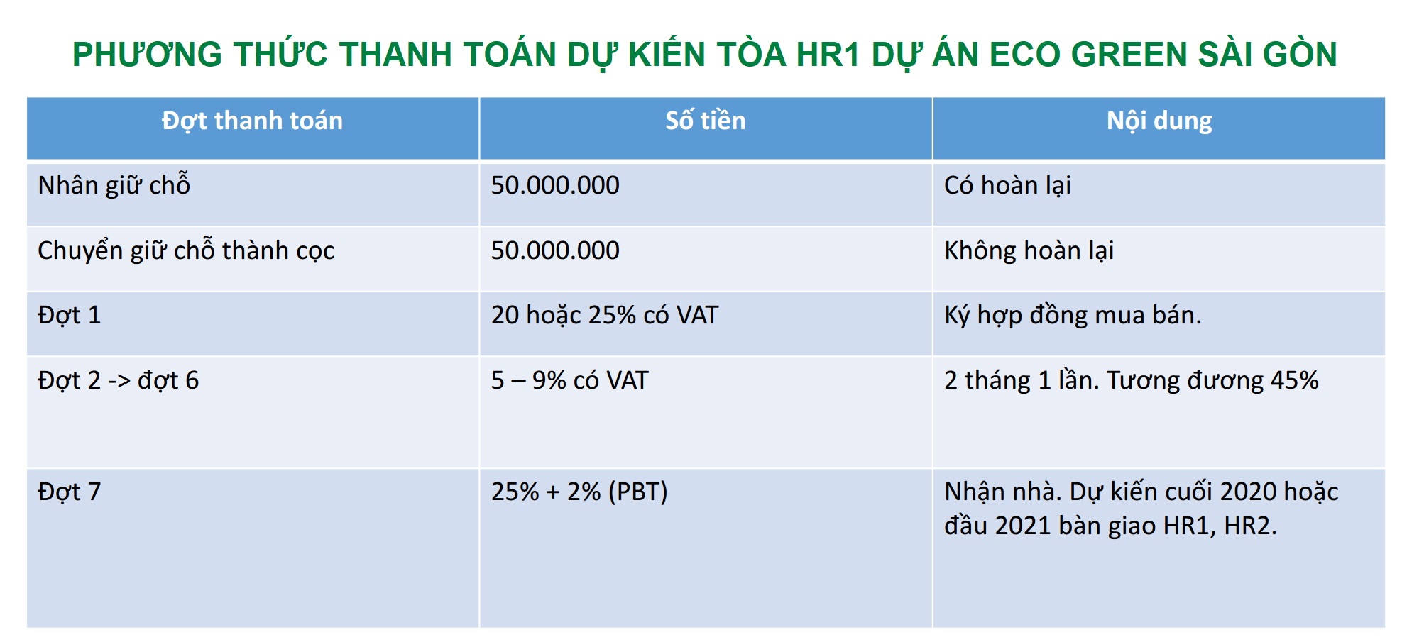 9. PHƯƠNG THỨC THANH TOÁN DỰ ÁN ECO GREEN SÀI GÒN